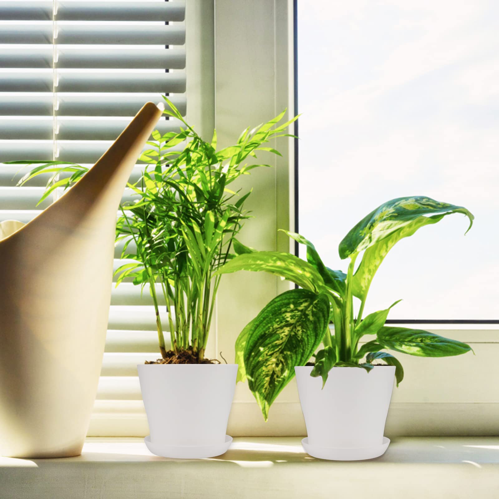 Kinglake 8pcs 17cm White Plant Pots Plastic Large Flower Pots With Pallet Tray For Indooor Outedoor Office House Desk Amazon Co Uk Garden